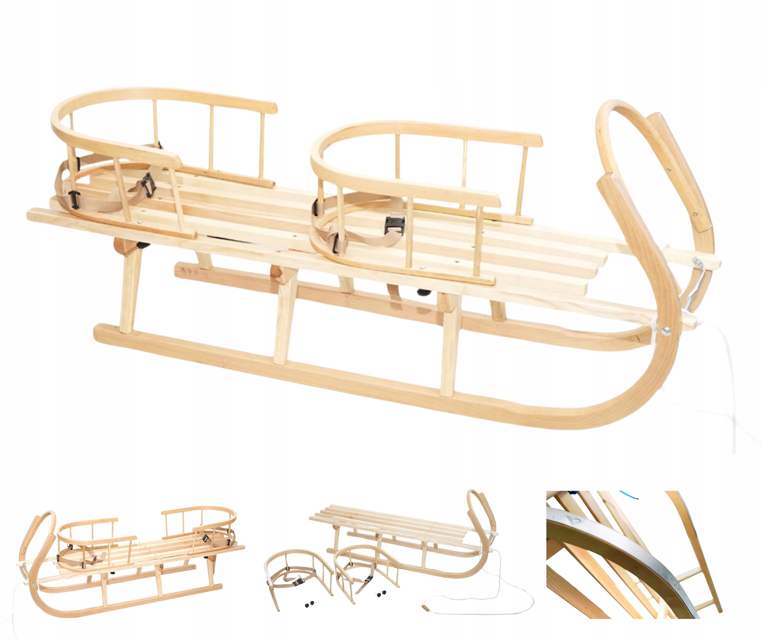 Sanki drewniane z oparciem bliźniak podwójne dla dziecka Prezent Zima PL