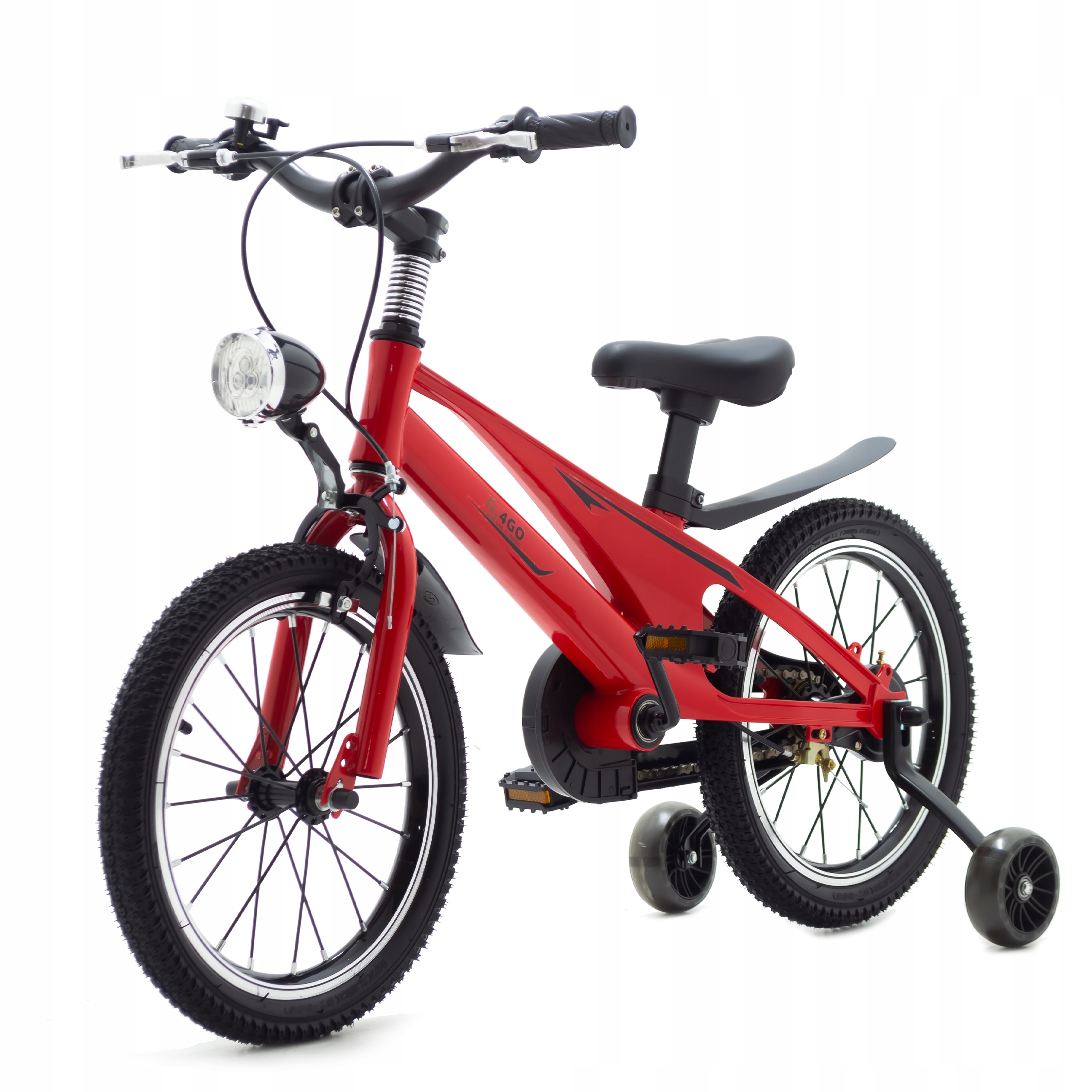 Bezpieczny, solidny i gotowy do jazdy – Rowerek dziecięcy 4Go o rozmiarze kół 14 cali to idealny wybór na początek rowerowej przygody. Wyposażony w świecące boczne kółka, lampkę LED z przodu oraz praktyczne dodatki takie jak dzwonek, błotniki i osłona łańcucha. Do zestawu dołączono również pompkę i zestaw kluczy do skręcenia roweru – wszystko, czego potrzeba do startu!